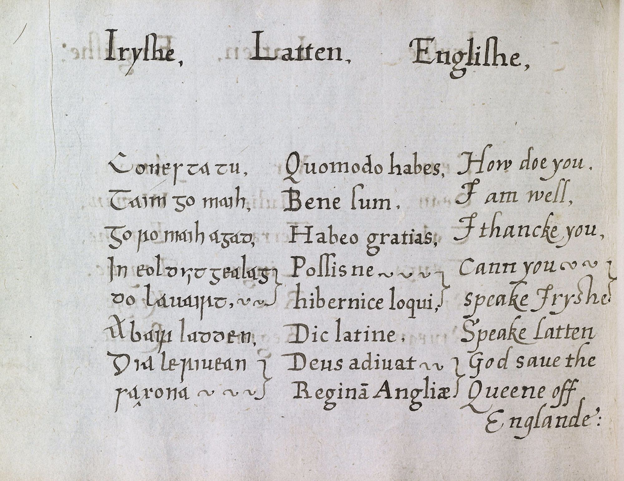 La Bibliothèque Patrimoniale possède également deux exemplaires du Catechism, or Christian Doctrine by Way of Question and Answer (1742) d'Andrew Donlevy. Ce manuel bilingue a été imprimé en utilisant un caractère d’imprimerie particulier créé en 1732 pour le Dictionnaire anglais-irlandais de O'Begley. Les deux ouvrages sont les deux seuls à avoir été imprimés avec ce caractère.