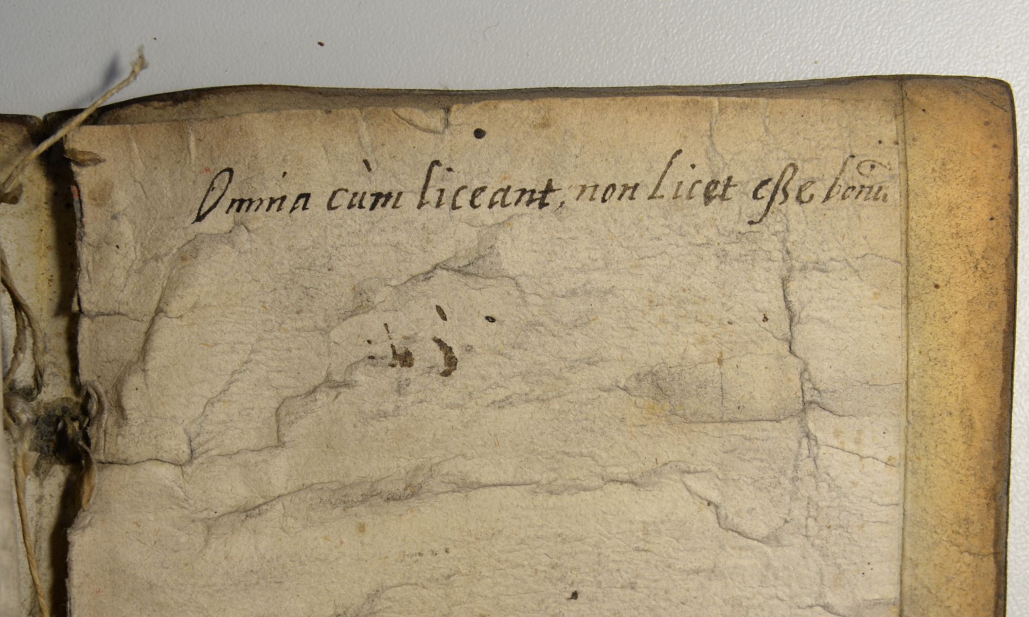 Les réactions sont parfois plus intéressantes, notamment quand elles révèlent le contexte intellectuel et physique dans lequel baignait l’annotateur. Cet exemplaire des Six livres de la république nous montre que le lecteur devait avoir un autre ouvrage à portée de main et opérait une association thématique entre les deux écrits. On pouvait également recopier des textes entiers sur les pages de garde, comme ce poème sur une page de garde.