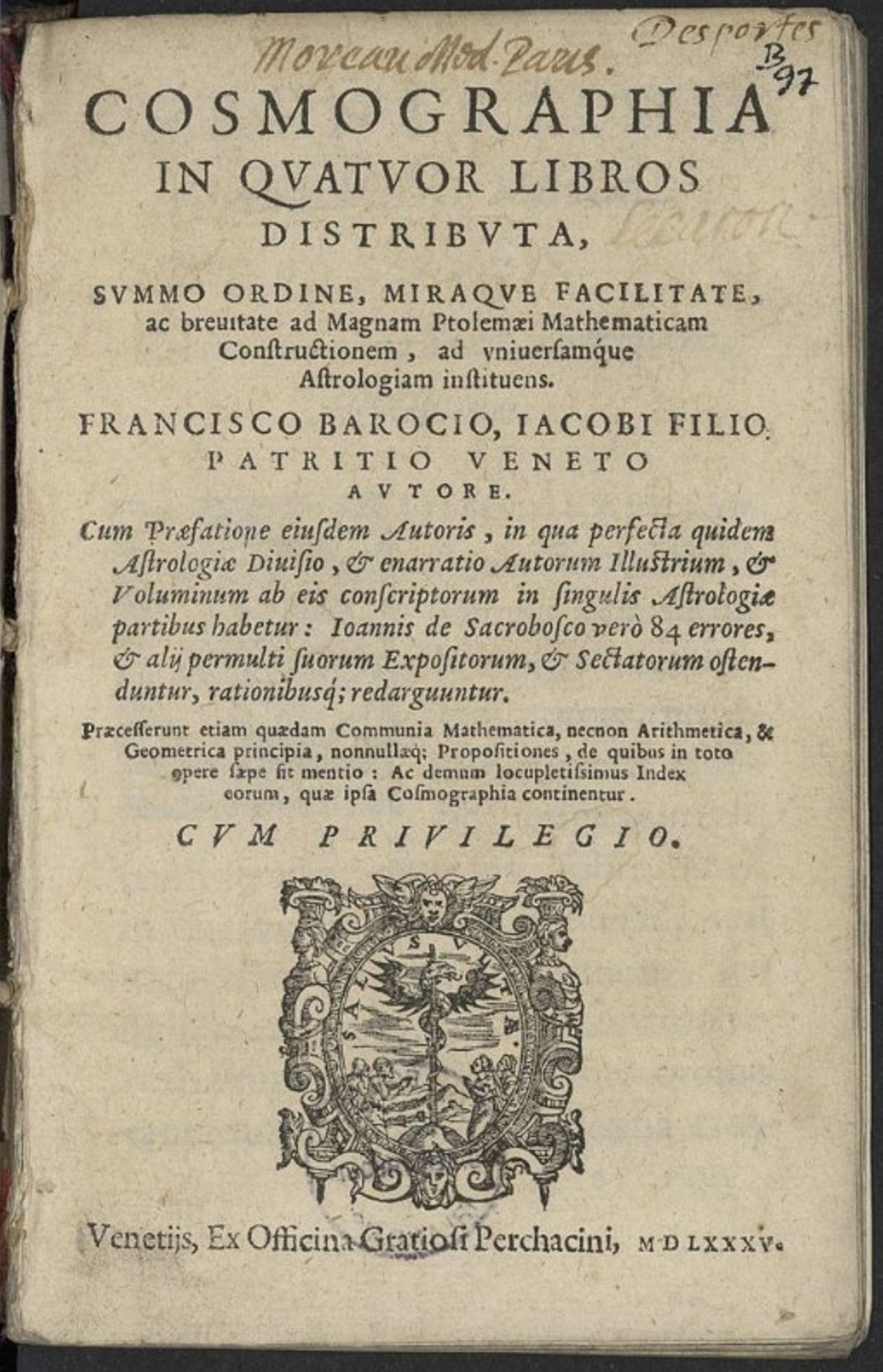 F. Barozzi, Cosmographia in quatuor libros distributa, Venise : Grazioso Percacino, 1585, USTC 812370 – B 97.