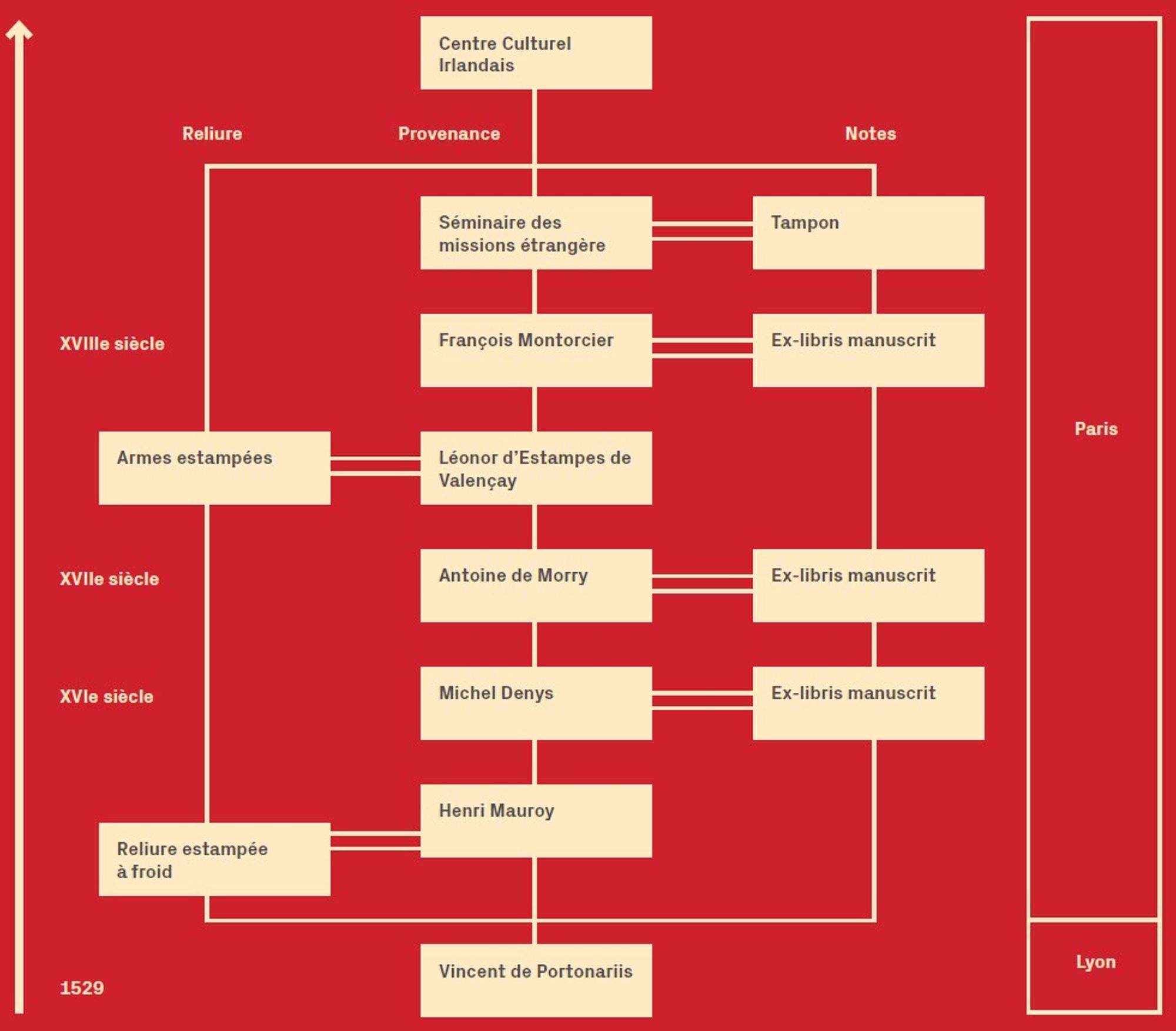 - Provenance : information sur les possesseurs et/ou utilisateurs successifs d’un livre qui permet de retracer l’histoire du volume.