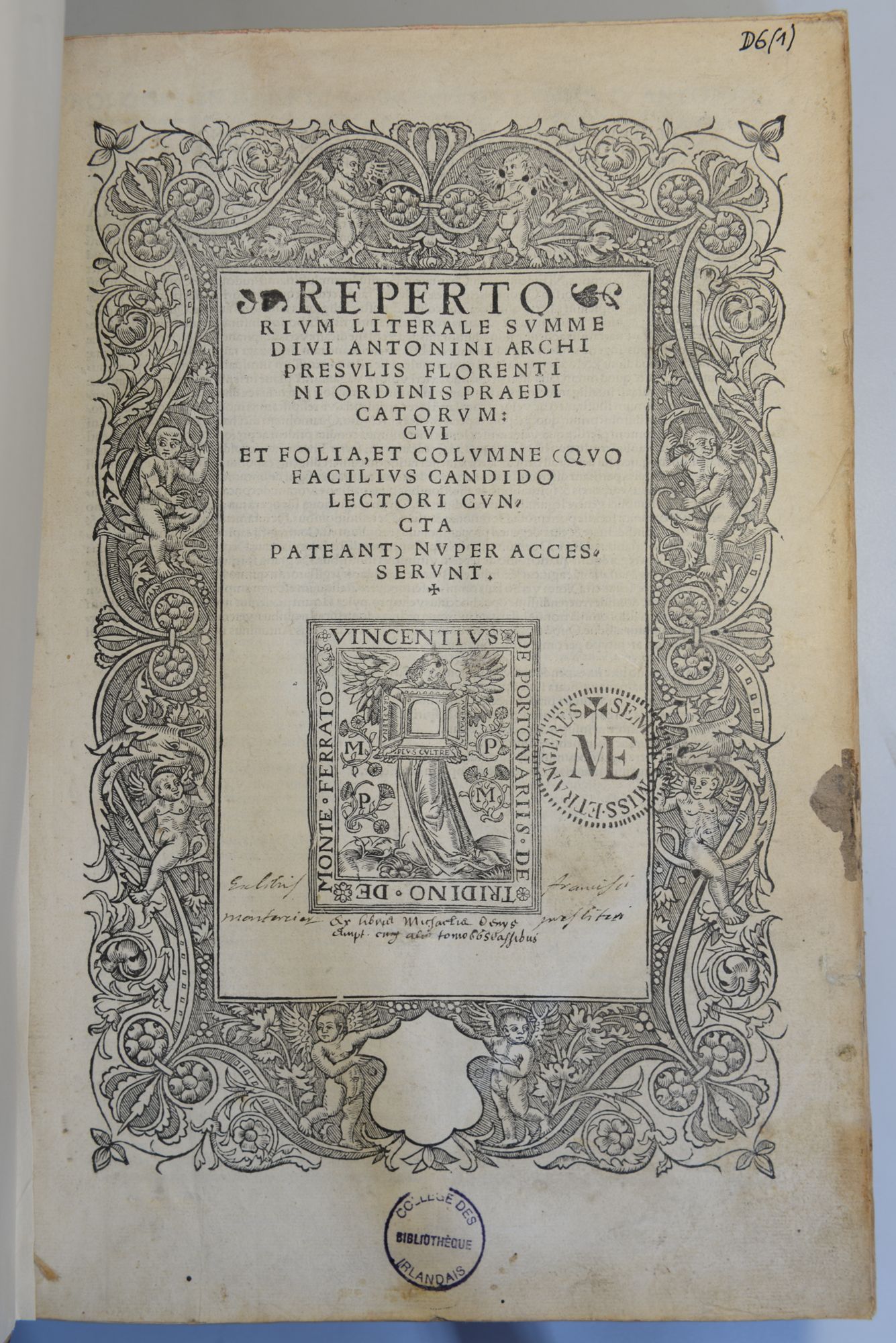 Antonin de Florence, Summe, Lyon : Jacques Mareschal pour Vincent de Portonariis, 1529, USTC 146085 – D 6.