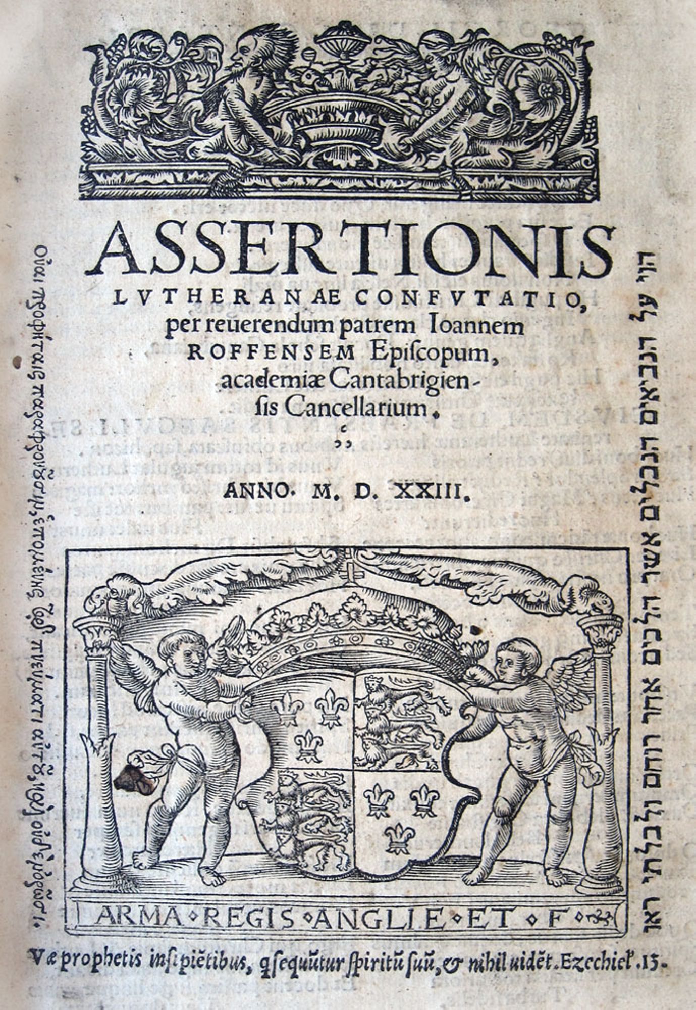 L'évêque John Fisher (1469-1535), ancien tuteur d'Henri VIII et théologien le plus en vue d'Angleterre, marqua son désaccord avec les arguments de Luther dans un long et savant ouvrage, Assertionis Lutheranae confutation. Publié à Londres en 1523, cet ou vrage s'opposait de manière détaillée aux principes luthériens, avec force et conviction. Grâce à cette publication, Fisher devint très vite la force d'opposition la plus populaire et efficace face au protestantisme qui se développait depuis peu. Assertionis Lutheranae confutation connut une large distribution et fut réimprimé plusieurs fois.